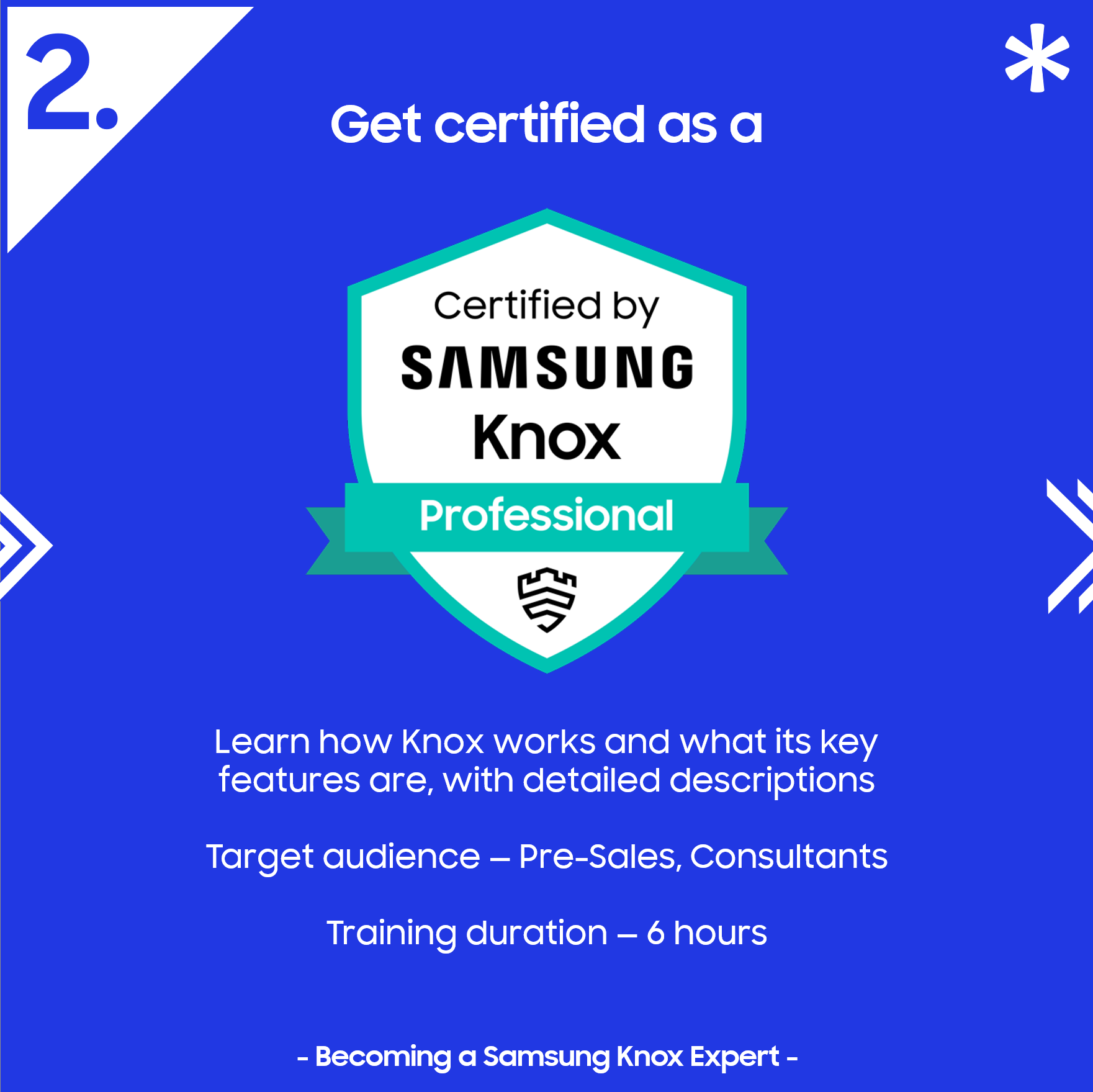 Become a trusted advisor in mobile security and device management. The Knox Expert certification is your key to delivering exceptional value and standing out in a competitive market.